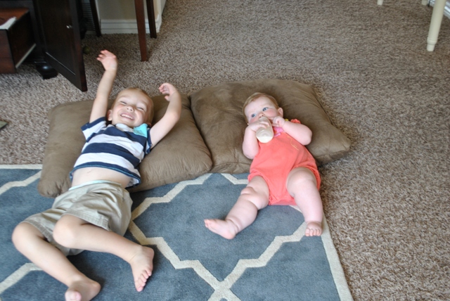 You continue to adore your brother. The best sound I have ever heard started happening this month. The sound of you two, in another room together, laughing. When I hear that, I think, now this is why people have lots of kids. And Nicholas always makes sure I watch whatever it is that he's doing to make you laugh. On the flipside, this month is the first time that you've been mobile enough to start causing problems for Nicholas. I'm starting to hear the famous complaints of "Mom, she took my toy!" and "Mom, Ew-ie's legs are touching me!" Thankfully, at least for now, these problems are one-sided, as you, Sweet Ellie, are oblivious to the ideas of "mine" and "yours."